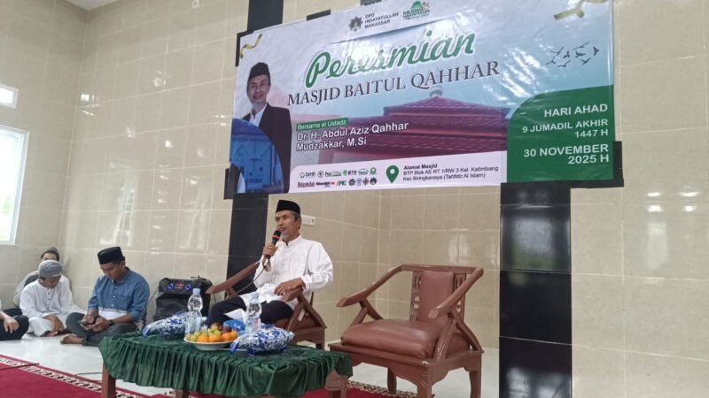 Makasssar, Alislamyaabunayya.Or.Id —- Dewan Pengurus Daerah (DPD) Hidayatullah Makassar resmi meresmikan Masjid Baitul Qahhar yang berlokasi di BTP Blok AE RT 1/RW 3 Katimbang, Kecamatan Biringkanaya, Makassar